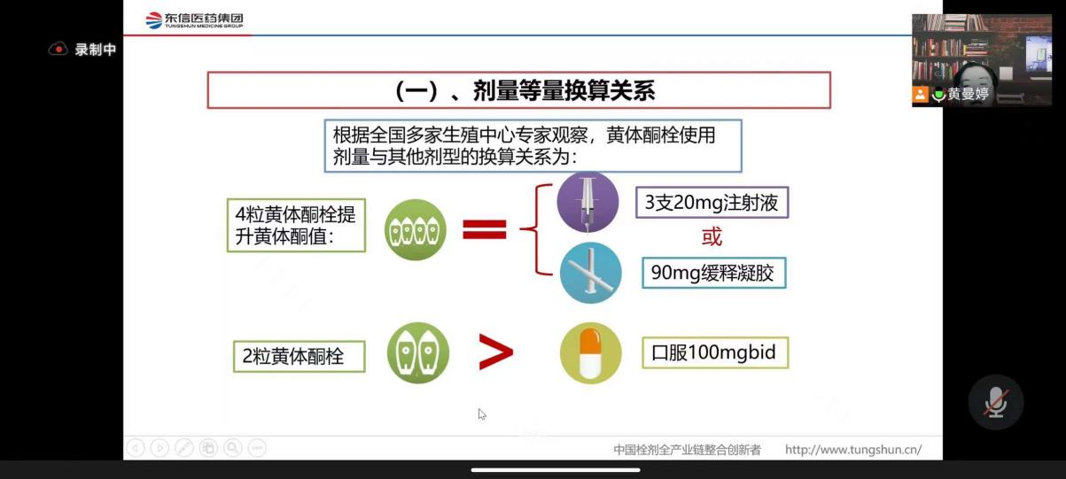講解過程中,黃主任詳細(xì)的闡述了孕酮栓與其他孕酮制劑的區(qū)別和優(yōu)勢,并對栓劑與其他制劑的劑量換算關(guān)系作了講解,最后,黃主任結(jié)合自身在臨床上的案例著重強(qiáng)調(diào)了黃體酮栓在婦科3個(gè)主要適應(yīng)癥上的重點(diǎn)應(yīng)用。