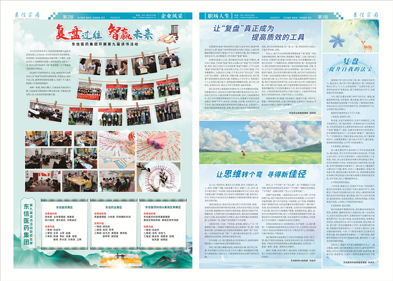 今年4月23日,東信醫(yī)藥集團啟動了“復盤過往,智贏未來”第九屆讀書活動。通過《復盤》這本書的學習,我得以對過往的工作進行分析回顧、邏輯推演、探究規(guī)律,制定實施計劃,研究調(diào)整目標方向,實現(xiàn)了團隊和自我提升。