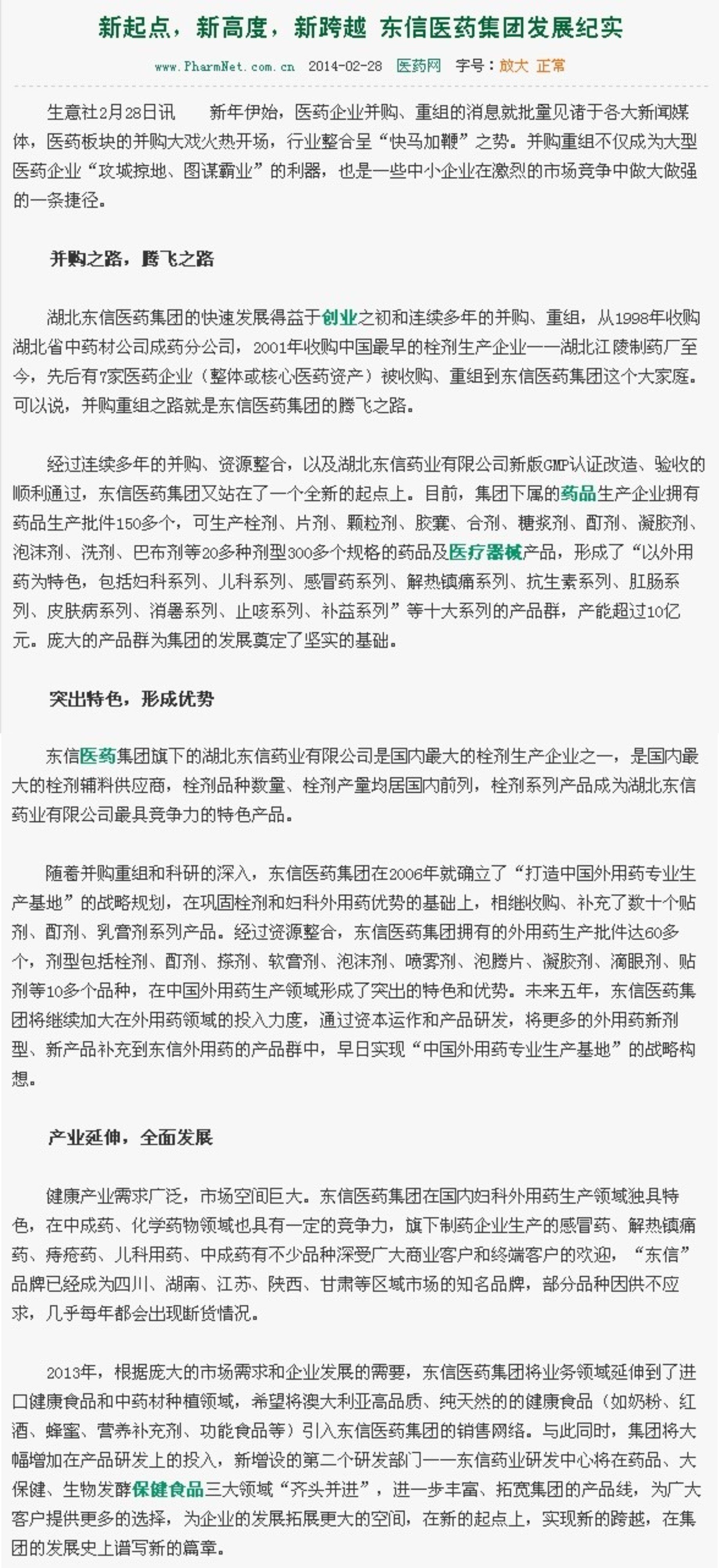 媒體報道:東信醫(yī)藥集團發(fā)展紀實