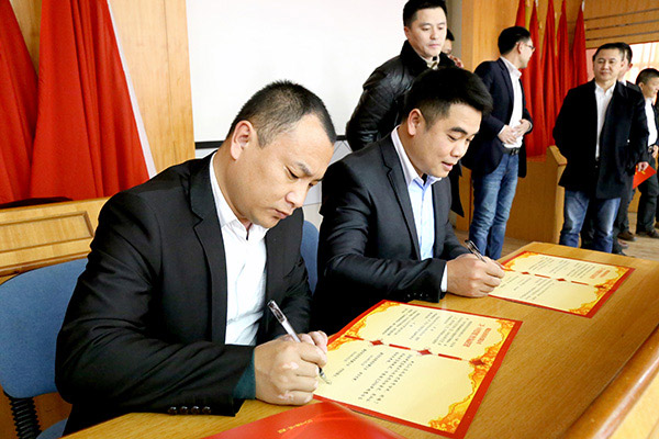 會(huì)議期間,三個(gè)銷售部門的省區(qū)經(jīng)理代表各省區(qū)簽署了2016年度的營(yíng)銷目標(biāo)責(zé)任狀。