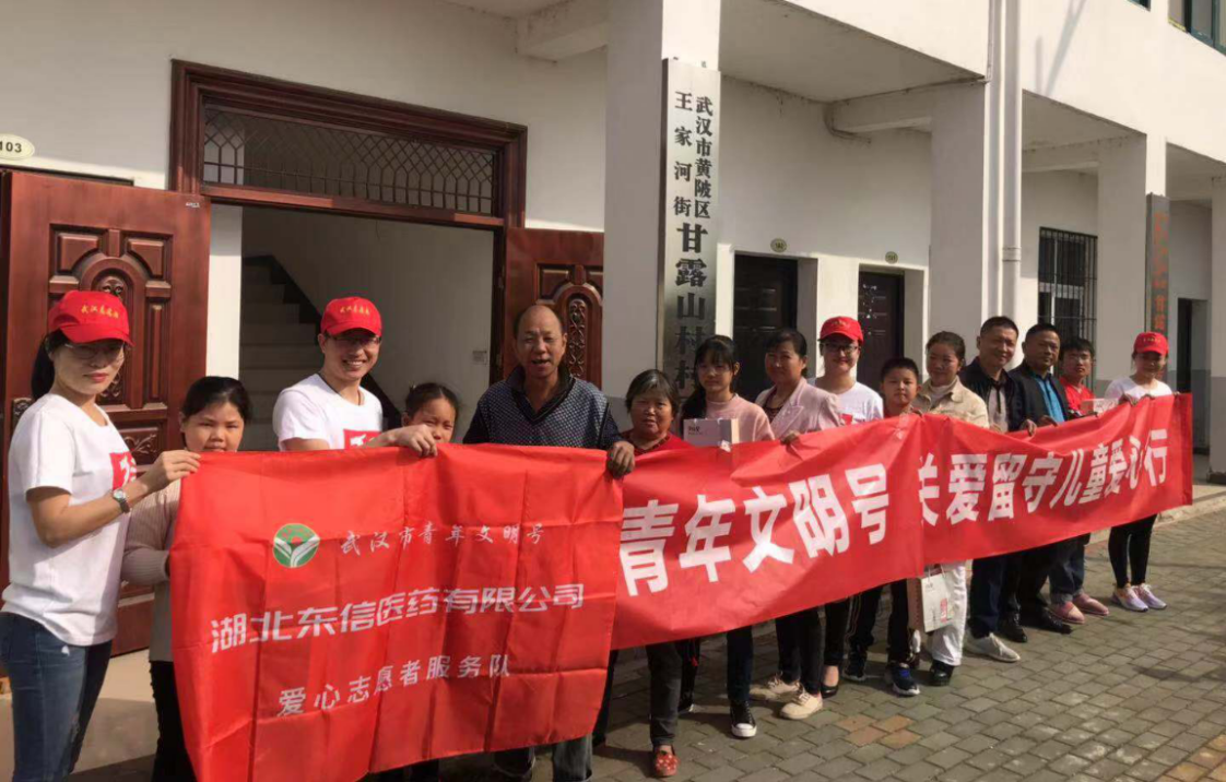 11月2日,湖北東信醫(yī)藥有限公司共青團青年文明號,在第六個全國“扶貧日”主題活動期間,走進武漢市黃陂區(qū)王家河街甘露山村,看望慰問該村貧困留守兒童。